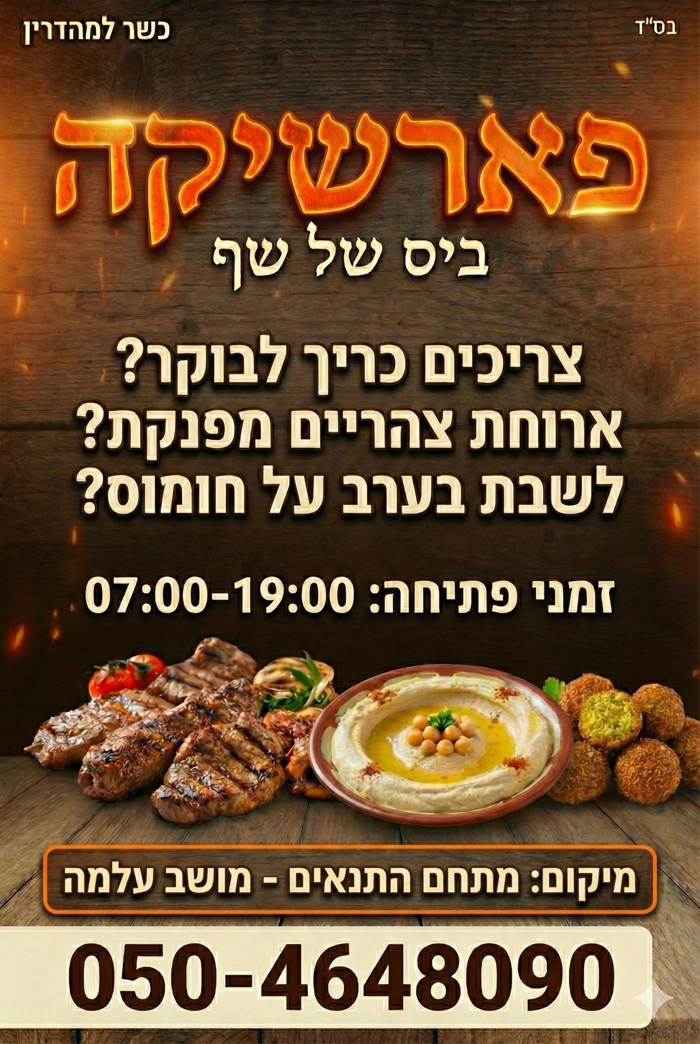 - כשרות: המקום כשר למהדרין (בשרי).