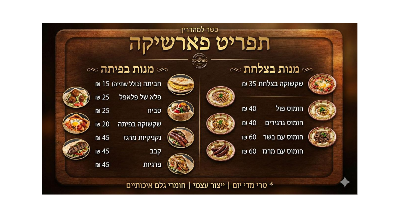 - סוג המטבח: מסעדה מזרחית ומזון מהיר.